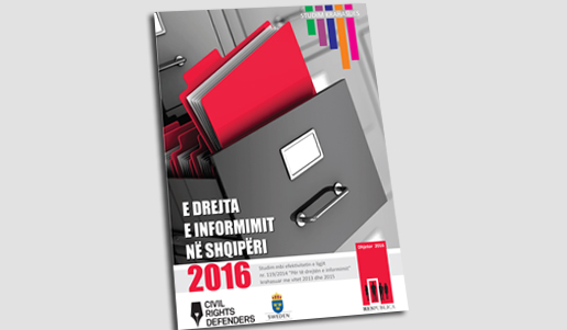 Qendra Res Publica, me mbeshtetjen e Civil Rights Defenders, gjate vitit 2016 ka bere nje testim te ligjit per te drejten e informimit ne shume menyra dhe gjetjet e rekomandimet jane permbledhur ne publikimin me titull “E dreja e informimit 2016”. Pas prezantimit te tij me 16 Dhjetor 2016, Res Publica ve ne dispozicion nje kopje elektronike te studimit (kliko ketu per ta shkarkuar).